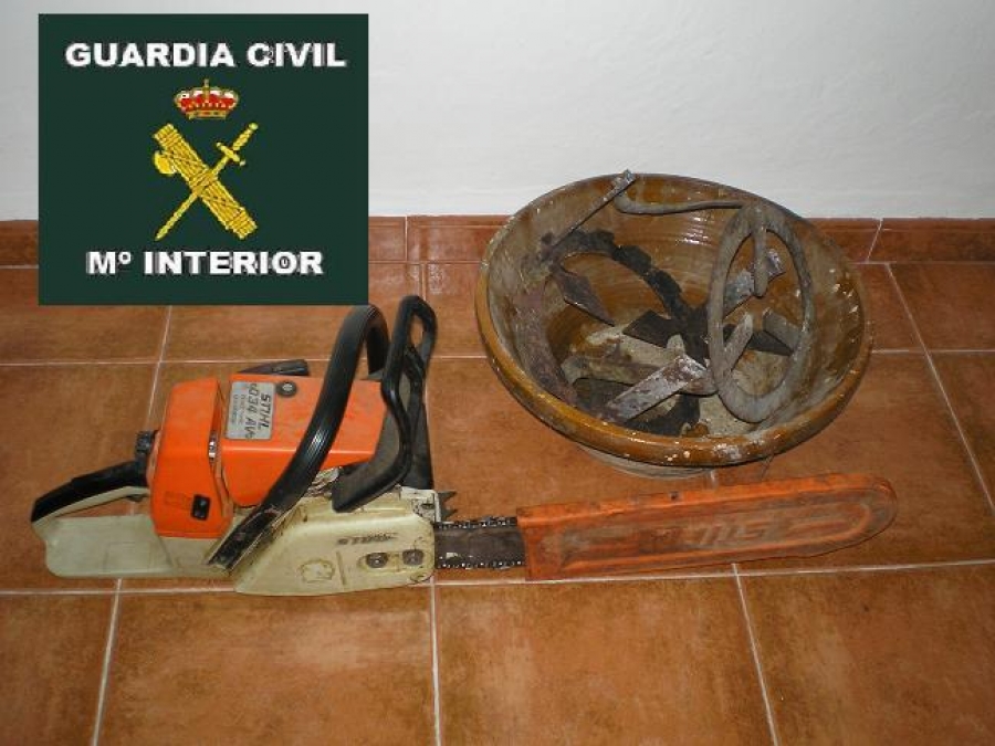 El presunto autor del hecho delictivo, que corresponde a las iniciales A.B.G., de 37 años de edad, sustrajo una máquina motosierra, dos lebrillos antiguos, una vareadora y diversos artilugios de chimenea.