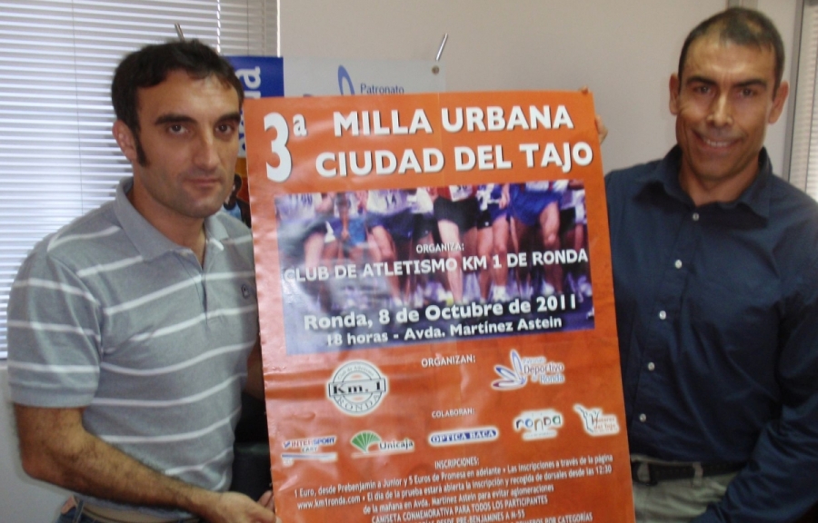 La Delegación municipal de Deportes ha presentado esta mañana la III edición de la Milla Urbana ‘Ciudad de Ronda’ que organiza el Club Kilómetro 1. Tendrá lugar este sábado a partir de las seis de la tarde en la Avenida Martínez Astéin. Bernardo Crespo, señaló que se trata de una prueba «de gran importancia».