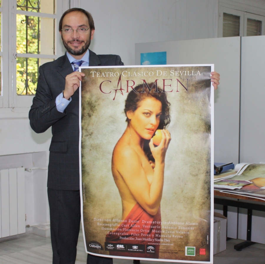 En la versión que presenta Teatro Clásico de Sevilla, el autor, Antonio Álamo, coloca al espectador ante una Carmen que se mueve en terrenos bastante fieles a las líneas argumentales de la ópera y la novela, para no traicionar los ejes fundamentales del mito, pero que ahonda en las relaciones humanas de los personajes protagonistas de la tragedia para reescribirlos desde una visión actual y más realista. “Juega el autor con los tópicos propios del mito y de los textos de referencia para tensar los contrastes y redefinirlos con la complicidad de la visión de un espectador actual”, añadió Harillo.