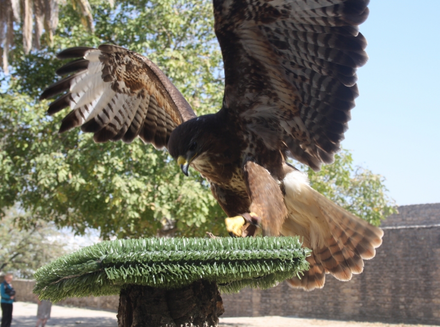 Hay que recordar que este espectáculo estaba previsto que tuviese lugar en el anfiteatro de Blas Infante, pero finalmente se trasladó ante las protestas de diferentes colectivos y partidos políticos a las Murallas del Carmen. Las aves autóctonas que tomarán parte en este espectáculo de cetrería son, entre otras: búhos reales, cernícalos, halcones, águilas (reales, culebreras o perdiceras), buitres leonados, elanios azules o lechuzas.