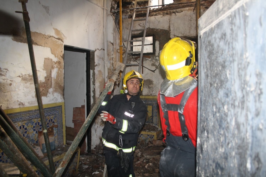Los bomberos fueron alertados del siniestro pasadas las diez y cuarto de la mañana, desplazándose con rapidez a la Cuesta de Santo Domingo, donde se ubica el edificio, para acometer labores de extinción, saneamiento y apuntalamiento del techo afectado para asegurar el inmueble. Junto a efectivos del Cuerpo de Bomberos, en la intervención participaron miembros de la Policía Local, trabajadores de la empresa encargada de los trabajos de rehabilitación y un arquitecto municipal.