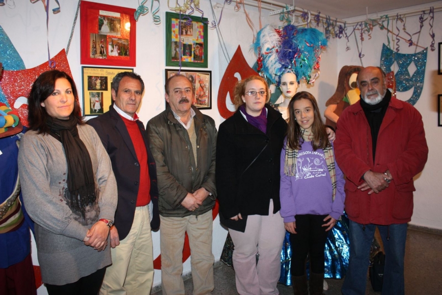 En la apertura de la muestra estuvieron presentes el edil Vicente Becerra, y el presidente de la Asociación Cultural Carnavalesca, Francisco Benítez, junto con la reina y reina infantil, Marta Pérez Tirado y Lucía Sánchez Benítez, respectivamente, además del autor del cartel de este año, el pintor Cristóbal López.
