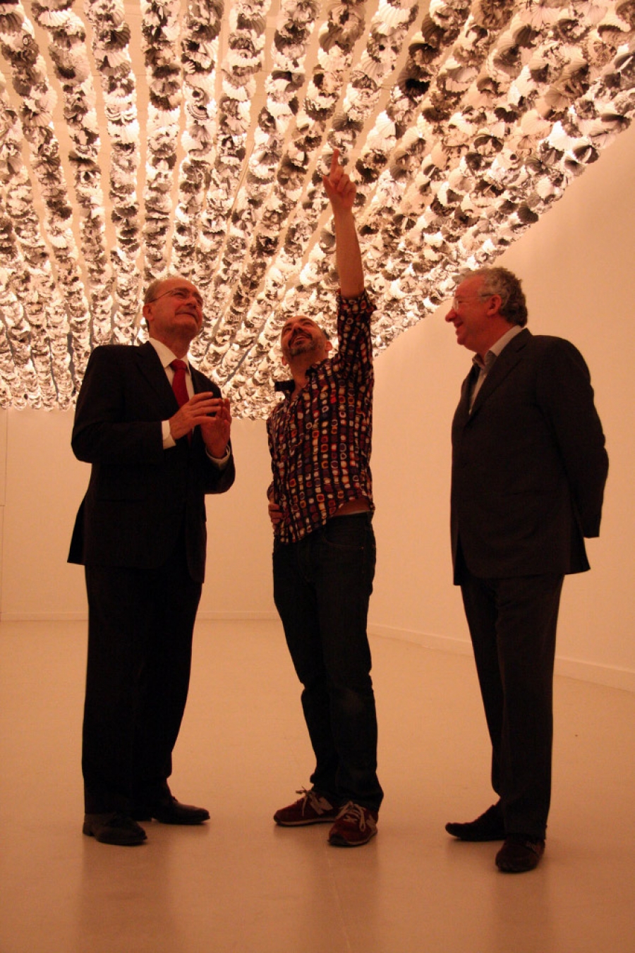 “Es una exposición en la que hay un giro y a mucha gente le va a sorprender”, así se manifestó Carlos Aires hace unos meses cuando, sin querer desvelar detalles del proyecto, empezó a trabajar en la instalación Opening Night, título que proviene de la película de John Cassavetes. Una conjunción de elementos locales y universales, una mezcla de sentimientos encontrados, como son la violencia, la empatía o el amor, todas las historias que hay detrás de una fotografía, del reflejo de un instante en la vida de una persona. Carlos Aires nos invita precisamente a entrar en este juego de miradas, de luz y de sombras a través de una instalación compuesta por 2.500 farolillos. Un juego que no se queda en el simple hecho de admirar su obra, hay que entrar y participar en la propuesta del artista rondeño. La sala, la iluminación, el espacio en sí, forman parte de la coreografía propuesta por Aires.