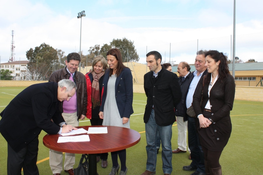 Este complejo deportivo, comercial y de aparcamientos, fue edificado por la empresa ‘Promociones y Construcciones 2000 Ronda 3 S.L.’ con una inversión que superó los 4,5 millones de euros y en la firma de recepción de las instalaciones han participado la alcaldesa de la ciudad, Mª Paz Fernández, varios concejales del equipo de Gobierno y representantes de la constructora.