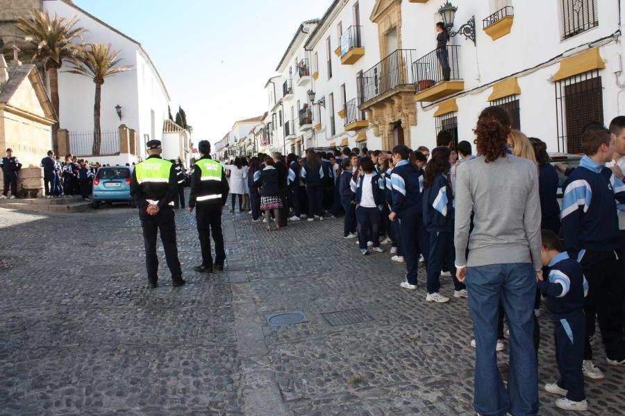 Más de mil escolares rondeños, pertenecientes a los colegios La Inmaculada y Las Esclavas, han participado esta mañana en dos simulacros de incendio que han desarrollado los efectivos de la Policía Local y del Consorcio Provincial de Bomberos.