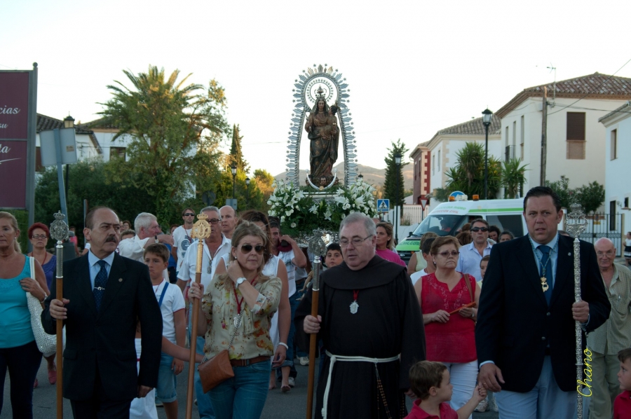 En la Pila de Doña Gaspara, recibián a la Virgen, el Delegado Municipal de Fiestas y Tradiciones Populares, Vicente Becerra y el Presidente de la Agrupación de Hermandades y Cofradías, Salvador Carrasco, que se unieron a la comitiva dando testimonio de su fidelidad a la Madre de Dios. El barrio de San Francisco, unido a la Virgen de la Cabeza desde siempre, fue testigo un año más de la visita que se realiza a la Hermanas Franciscanas, que con alegría cantaron a su Virgen.
