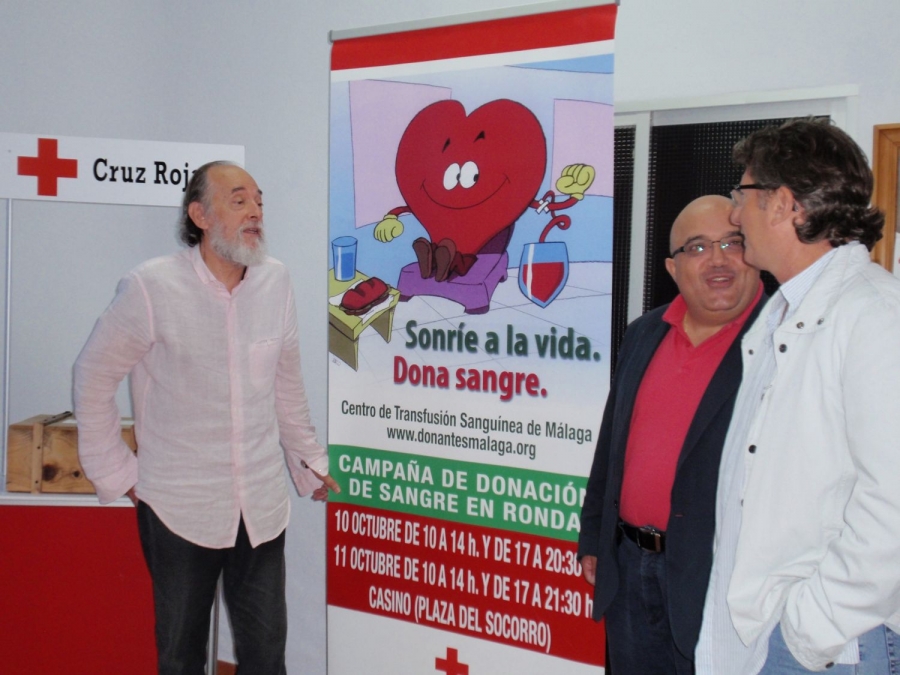 El delegado municipal de Salud, Jesús Vázquez, junto con los responsables de la Asamblea Local de la Cruz Roja de Ronda, Antonio Lasanta y Antonio Aranda, ha presentado esta mañana la nueva campaña ‘Sonríe a la vida, dona sangre’ del Centro de Transfusión Sanguínea de Málaga, que se desarrollará el miércoles 10 y el jueves 11 de este mes de octubre.