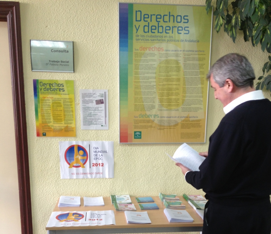 El Área Sanitaria Serranía de Ronda, ha instalado una mesa informativa sobre la EPOC (Enfermedad Pulmonar Obstructiva Crónica) en el centro de salud Ronda Sur. Con esta actividad se intenta promover una mayor comprensión de la citada enfermedad.