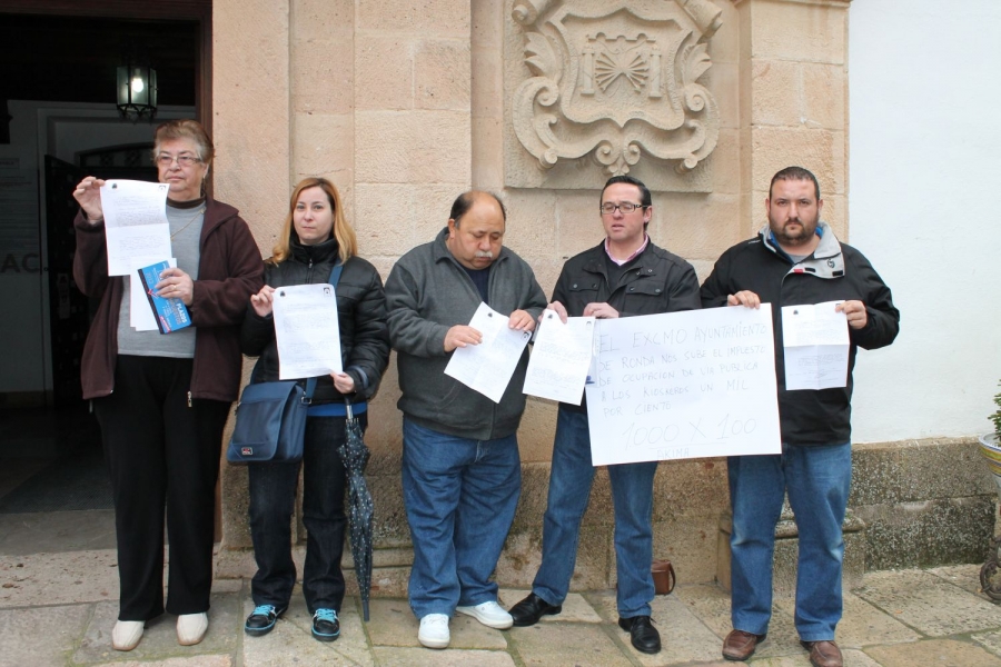 Una representación de kiosqueros de Ronda presentó ayer un escrito en el Ayuntamiento para protestar por la subida de impuestos referente a la ocupación de la vía pública, ya que según manifestaron ha crecido un 1.000% en lo que respecta a los semestres del pasado año.