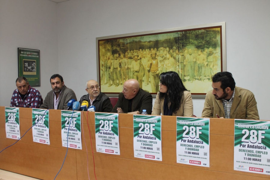 Esta mañana han comparecido en la sede de Comisiones Obreras en Ronda representantes de los dos sindicatos mayoritarios y miembros del PSOE, Izquierda Unida y el Partido Andalucista para analizar la problemática del empleo en el sector agrario, su alta tasa de paro y la reducción de peonadas aprobada recientemente por el Gobierno central para tener acceso al subsidio agrario, que ha disminuido de 35 a 20.