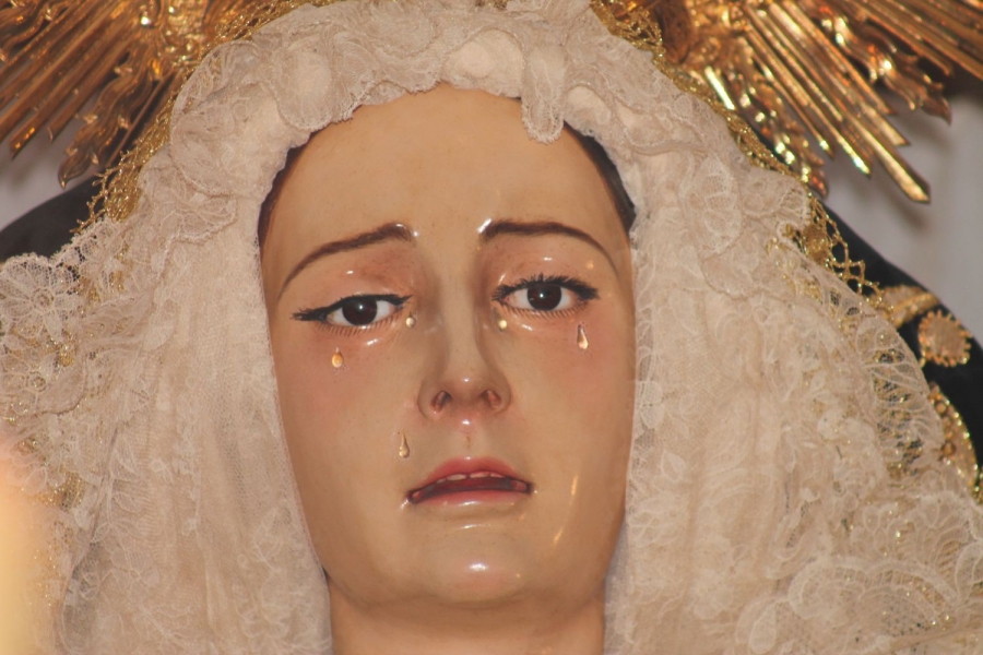 Una Virgen que es sinónimo de belleza. Este año estrenaba un broche con su nombre y un puñal, a juego con su corona. Austeridad en el adorno del trono en un año en el que la hermandad ha vuelto a dar prioridad al ejercicio de la caridad, «uno de los pilares de la cofradía», según apuntó Manuel Gazaba.