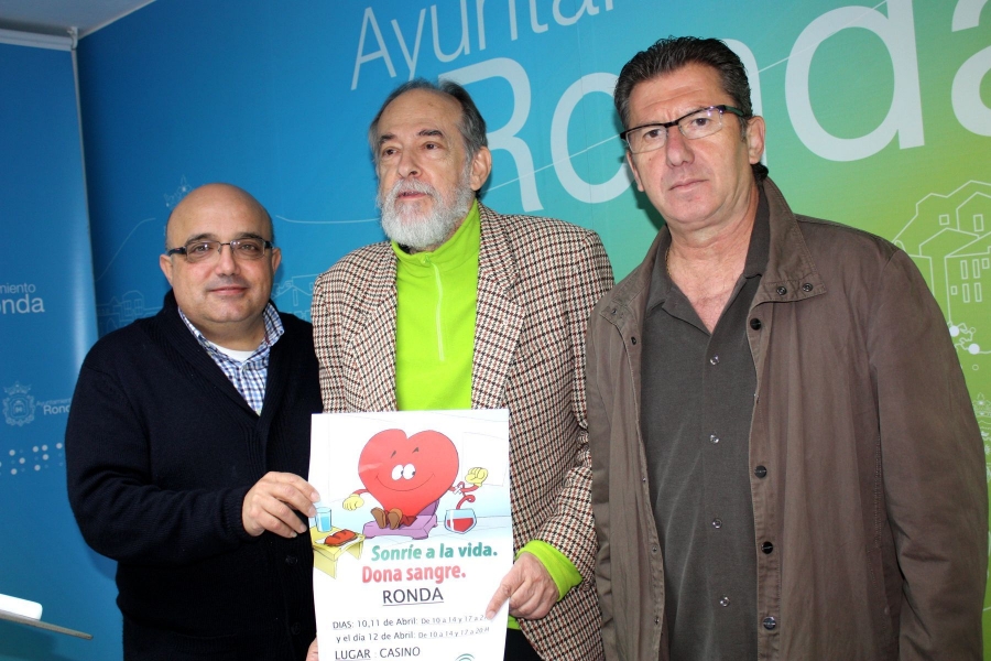 El concejal de Salud, Jesús Vázquez, y los responsables de la Asamblea Local de Cruz Roja en Ronda, Antonio Lasanta y Antonio Aranda, han presentado esta mañana una nueva campaña de donación de sangre, una vez más con el lema ‘Sonríe a la vida, dona sangre’.