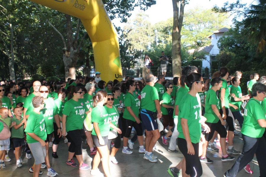 La marcha, que ha comenzado pasadas las diez de la mañana y cuya salida ha sido la Alameda del Tajo, ha contado con la participación de personas de todas las edades que han vestido una camiseta verde con el lema “En Ronda 1.000 almas con el Alzheimer”.