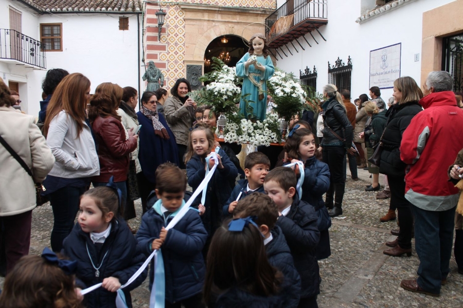 Los alumnos de Primaria han sido los encargados de llevar, por turnos, a la Virgen Niña a hombros. Muchos padres también han querido ser partícipes de esta celebración y han acompañado a los niños en el recorrido de la procesión.