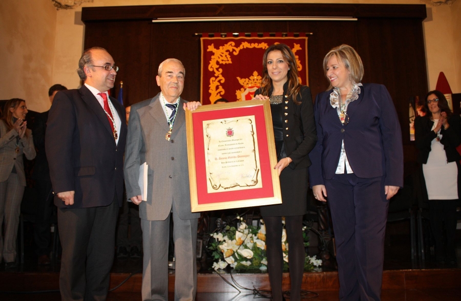 Fue la alcaldesa, María de la Paz Fernández, junto con los ediles Fernando Corrales e Isabel María Barriga, la encargada de entregar el nombramiento a Antonio Garrido ante el aplauso de los asistentes.