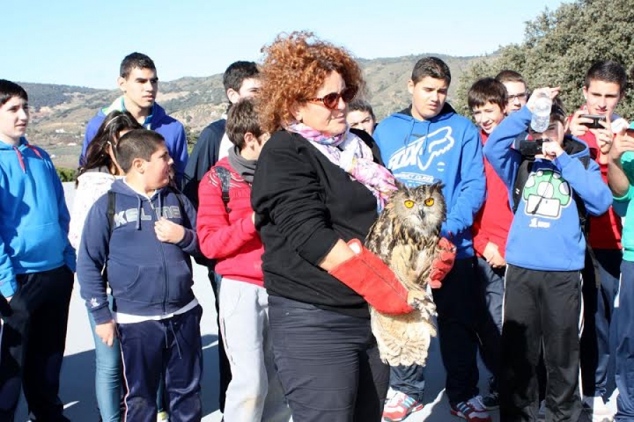 Como colofón a la actividad, se ha procedido a soltar un ejemplar de búho real que tras un periodo de recuperación de las heridas que presentaba, ya se encontraba en condiciones para volver a su entorno natural.