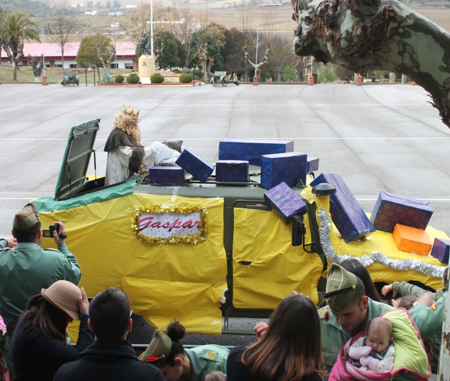 El acuartelamiento General Gabeiras, sede del IV Tercio Alejandro Farnesio, ha acogido esta mañana su tradicional Cabalgata de los Reyes Magos, donde han participado unos trescientos niños, hijos y familiares de Caballeros Legionarios.