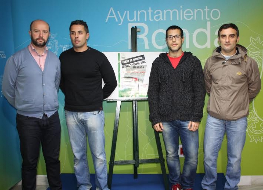 Los concejales de Deportes, Bernardo Crespo, y de Participación Ciudadana, Ángel Vázquez, han presentado esta mañana el curso de monitor de fútbol y fútbol sala que ha sido organizado por el CEDIFA (Centro de Estudios, Desarrollo e Investigación del Fútbol Andaluz), un órgano dependiente de la Federación Andaluza de Fútbol, y que además del Ayuntamiento cuenta con la colaboración del CD Ronda y de Canal Charry TV.