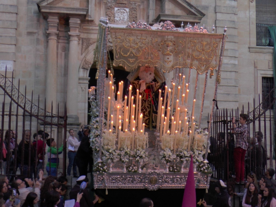 Con puntualidad se abría el pórtico de Santa Cecilia ante una gran expectación. Costaleros arrodillados para una salida milimétrica que la cuadrilla de Francisco Pérez ejecutó a la perfección. Antes, Ainhoa Pérez había interpretado con su poderosa voz un Padre Nuestro, algo que se está convirtiendo en tradición en los últimos años.