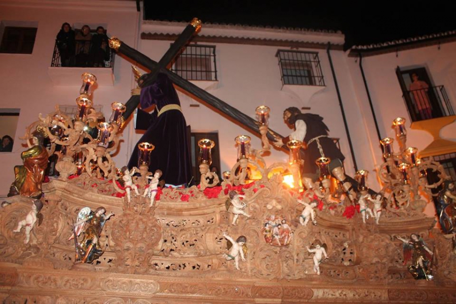 Espectacularidad en el nuevo paso del Señor de Ronda, que remató el pasado año el sevillano Antonio Ibáñez y que contó con la novedad de dos arcángeles en la zona trasera, realizados por la utrerana Encarnación Hurtado.