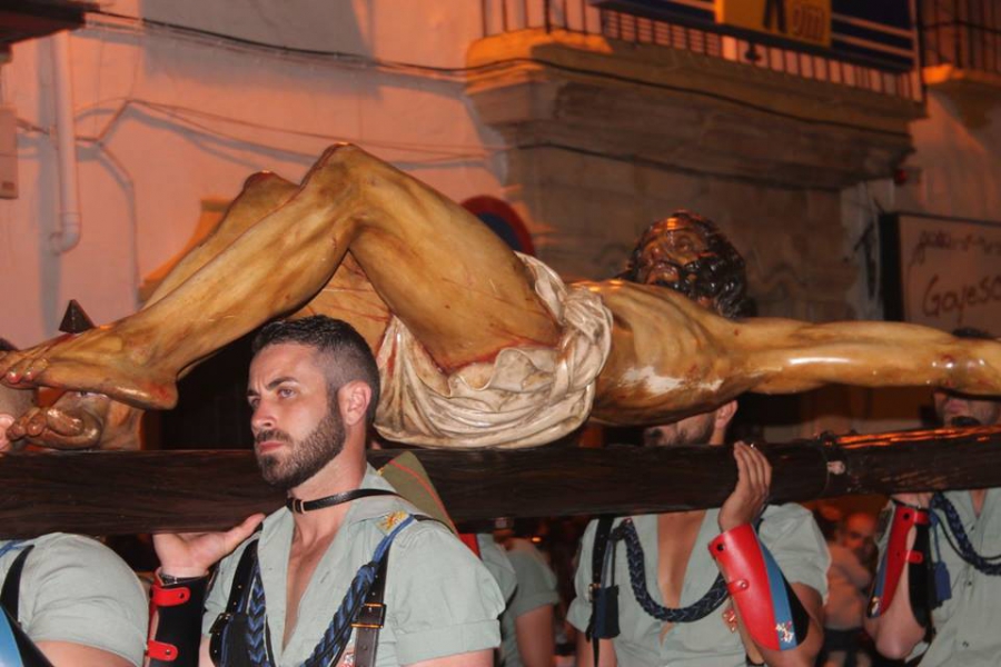 Cientos de personas se congregaron en la plaza Duquesa de Parcent para disfrutar de una estación penitencial en la que intervinieron unos 400 nazarenos y que contó con la presencia de alrededor de un centenar de Caballeros Legionarios del IV Tercio Alejandro Farnesio, que portaron la imagen del Cristo de la Buena Muerte.