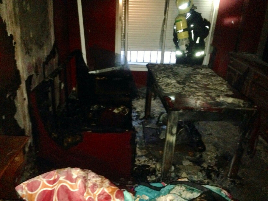 El fuego se originó en el salón de la vivienda, que ha quedado totalmente calcinado, mientras que el resto del inmueble fue invadido por el humo. Por el momento se desconocen las causas del siniestro, aunque por fortuna únicamente se han producido cuantiosos daños materiales y las llamas no han afectado a ninguna persona.