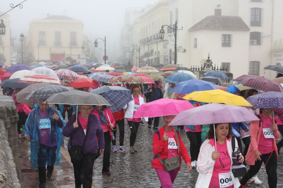 Ayer, cerca de mil rondeñas desafiaron a la lluvia participando en la IV edición de la Marcha Solidaria de la Mujer ‘Ciudad de Ronda’, que se celebró con el lema ‘Tú puedes’ y que en esta ocasión tenía el objetivo de recaudar fondos para Nerea y Javi, los dos pequeños que padecen el Síndrome de Peters y cuya familia apenas puede costear su tratamiento.