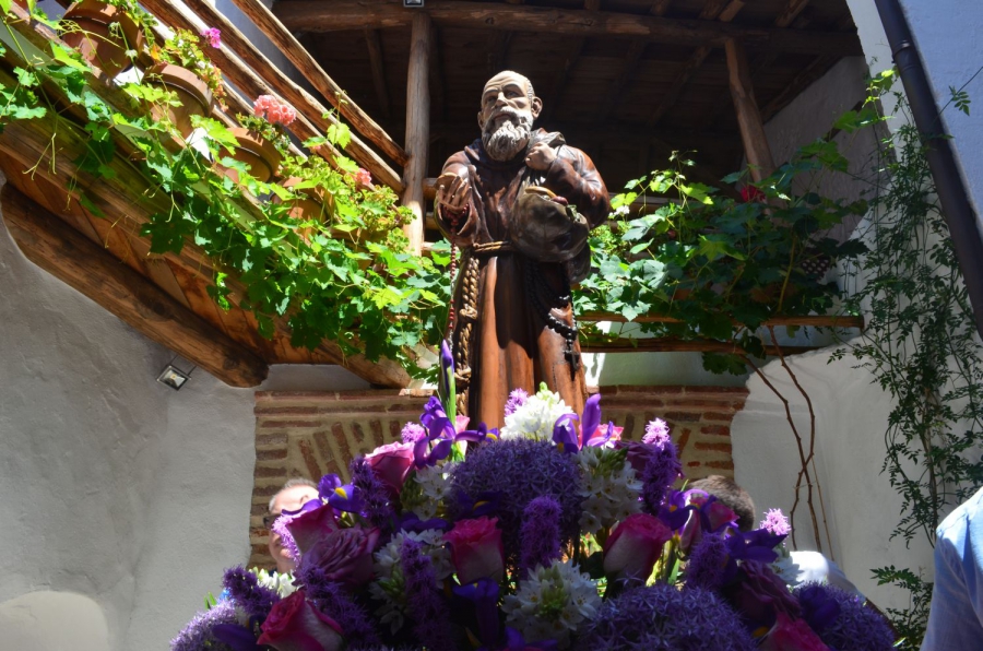 Cabe destacar en este punto que tanto la imagen del religioso como el trono fueron donados por una familia del pueblo tras la beatificación de Fray Leopoldo, que se produjo el 12 de septiembre de 2010. En cada una de las paradas de la procesión los niños del municipio recitaron poesías referentes al Beato y, a la llegada a la Plaza, se llevó a cabo una ofrenda floral a la estatua del religioso que allí se ubica. A continuación, la procesión continuó su camino hasta regresar a la Iglesia de San Antonio de Padua algo más de una hora después de su salida.