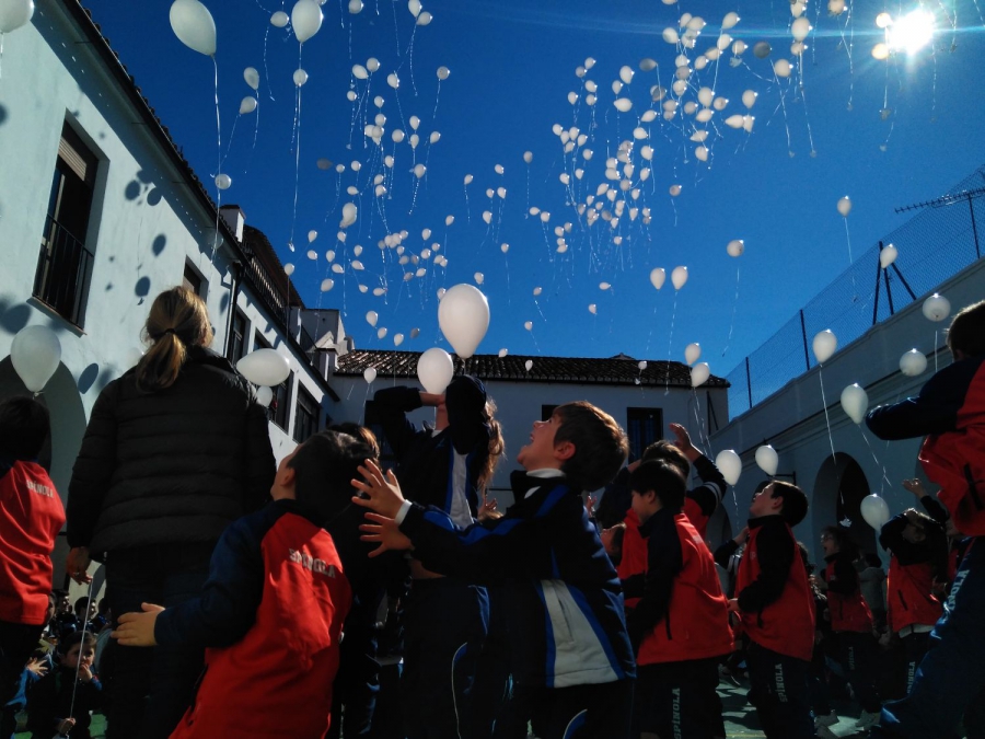 El Colegio Fundación Spínola – Sagrado Corazón ha celebrado esta mañana el Día de la Paz y la No Violencia con un acto en el que ha participado todo el alumnado y en el que con una suelta de globos se han mandado mensajes de paz al cielo, de manera simbólica.