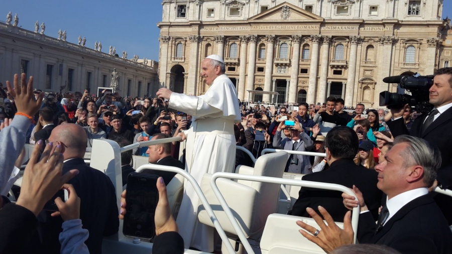 Un total de 75 jóvenes pertenecientes al Instituto Martín Rivero y al Colegio Juan de la Rosa, junto a algunos de sus profesores, han recibido esta mañana la bendición del Papa Francisco, un acto que ha servido como colofón de su viaje de estudios y en el que la palabra emoción ha sido la más repetida.