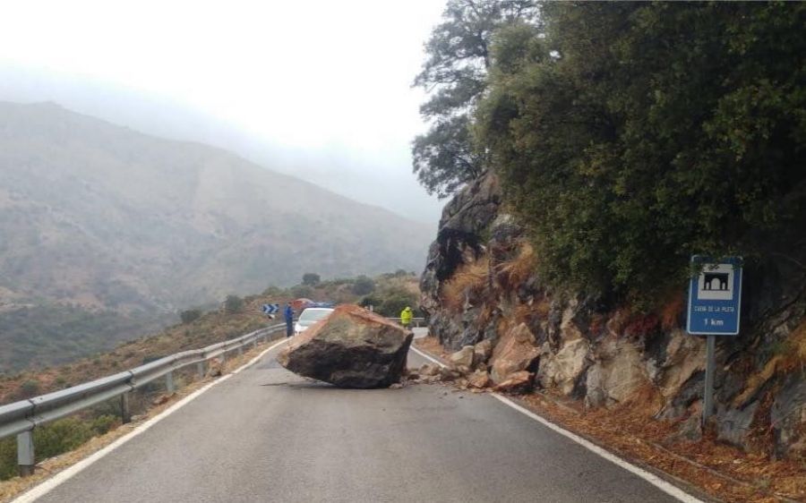 El desprendimiento de una roca de grandes dimensiones a causa de las precipitaciones ha causado esta tarde el corte total de la carretera MA-8401, desde el punto kilométrico 1 al 9,6, que conecta el término municipal de Benaoján con Jimera de Líbar. Por lo que se está desviando a los vehículos por la A-369, la carretera de Algeciras.