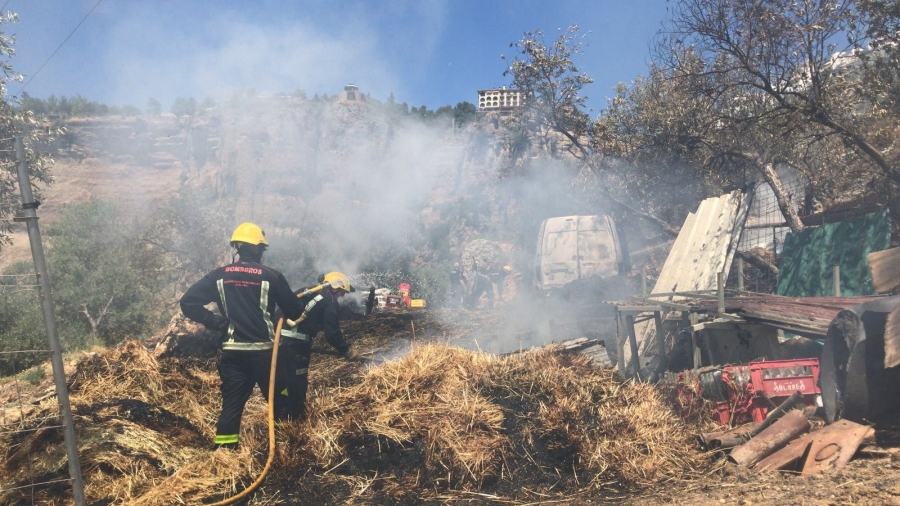 La acumulación de heno, planta herbácea de rápida combustión, ha motivado que las llamas se expandiesen con rapidez. Por fortuna y gracias a la rápida actuación de los bomberos los daños no han sido mayores. Y eso que hoy solo cuatro profesionales del parque de nuestra ciudad se encontraban operativos, una situación poco comprensible teniendo en cuenta el aumento de situaciones de este tipo por las altas temperaturas de la época estival.