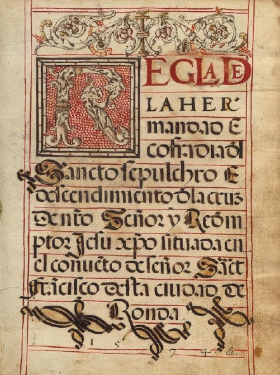 El documento lleva por título: “Las reglas de la Hermandad e Cofradía del Sto. Sepulcro e Descendimiento de la Cruz de Ntro. Señor Redentor Jesucristo en el Convento de San Francisco de esta ciudad de Ronda año de 1574”.