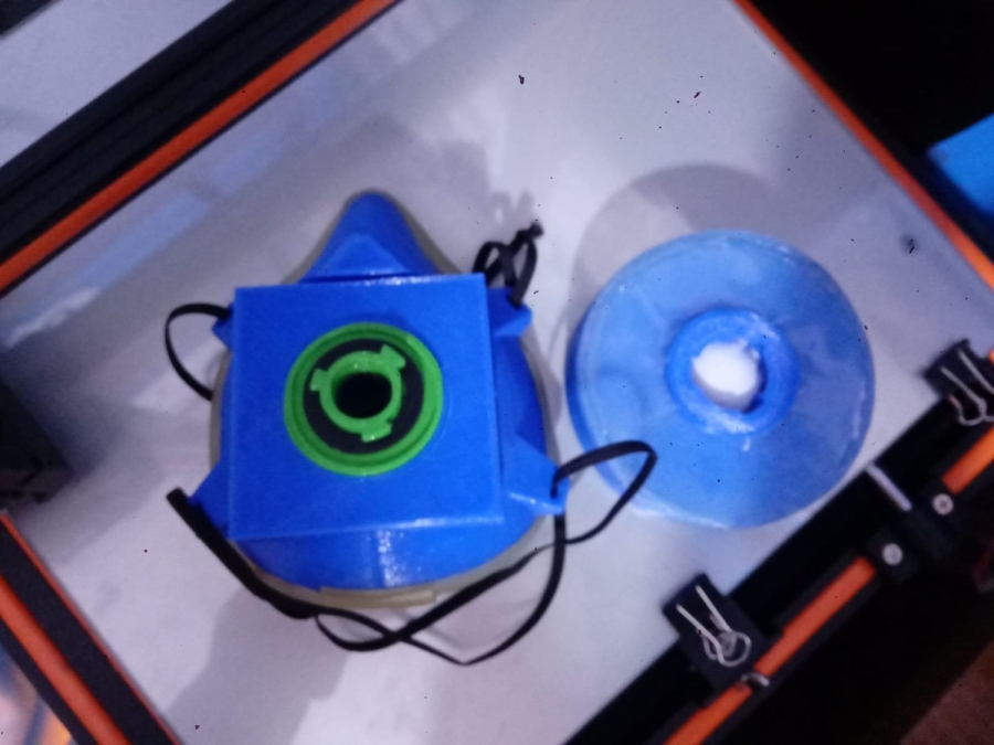 Alejandro detalla cómo es el proceso de fabricación de estas máscaras: “El modelo de la máscara se imprime en una pieza maciza, lo que evita filtraciones de aire; pero aumenta muchísimo el tiempo de impresión. Para los filtros ya son diversos materiales: para las partes de la carcasa empleo la misma impresora 3D en impresión maciza. Para el interior del filtro uso cuatro capas de filtro fino, dos capas de filtro compuesto prensado y una capa de carbón activado granulado”.