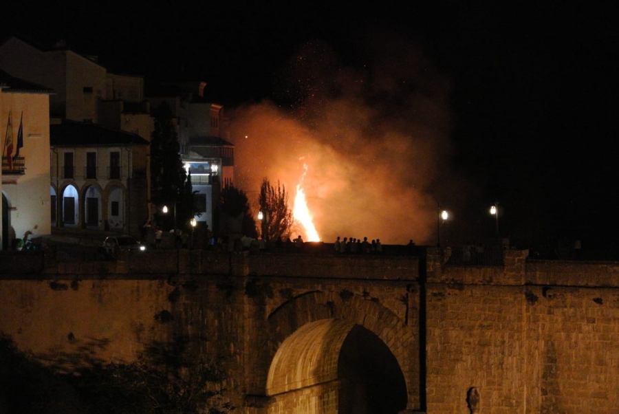 Alrededor de las 23:04 horas de anoche el Parque de Bomberos de Ronda recibió el aviso de que se había producido un incendio en una zona de las cornisas del Tajo.