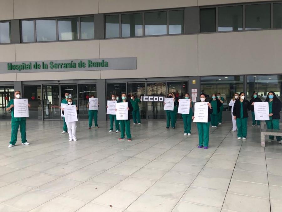 Este mediodía, al concluir su turno, todos los integrantes del servicio de limpieza del Hospital de la Serranía se han concentrado a las puertas del centro hospitalario en señal de solidaridad con el personal del Hospital Militar de Sevilla, donde se estudia la externalización de este servicio.