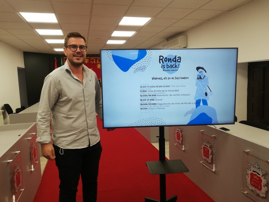 El concejal de Turismo, Ángel Martínez, ha presentado este lunes el evento Ronda is back (Ronda vuelve) con el que este año se va a conmemorar el Día Internacional del Turismo, que se celebra el próximo 27 de septiembre. El Ayuntamiento ha decidido organizar un amplio programa de actividades que se van a desarrollar durante la jornada del viernes 24 y el sábado 25 en diferentes espacios de la ciudad.