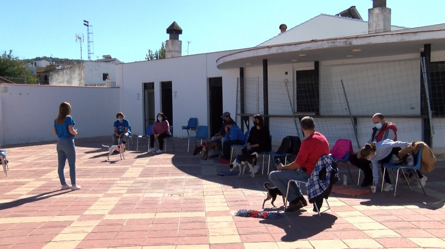 Para concienciar sobre el abandono animal y promover estos comportamientos éticos de convivencia, en la plaza Salvador Álvarez Cámara del municipio serrano se han realizado talleres sobre adiestramiento básico y sobre el uso lúdico del olfato en perros. También se han impartido diferentes charlas y se ha instalado una zona infantil en la que los más pequeños han podido dibujar y hacer juguetes con tela reciclada, entre otras actividades.
