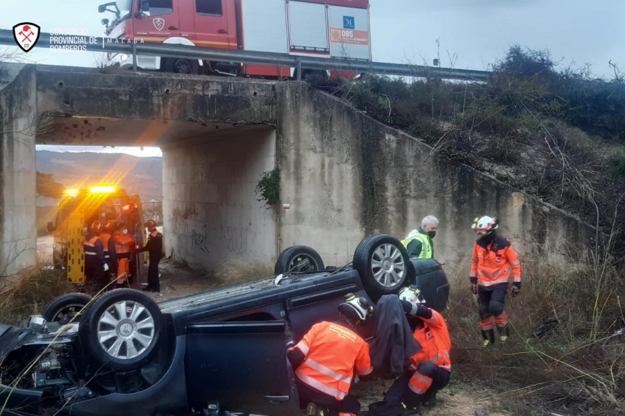 También fue necesaria la intervención del Consorcio Provincial de Bomberos ya que el conductor se había quedado atrapado en el vehículo y tuvo que ser excarcelado. Tras su salvamento, el hombre fue evacuado de inmediato al centro hospitalario de Ronda, donde fue atendido de urgencias.