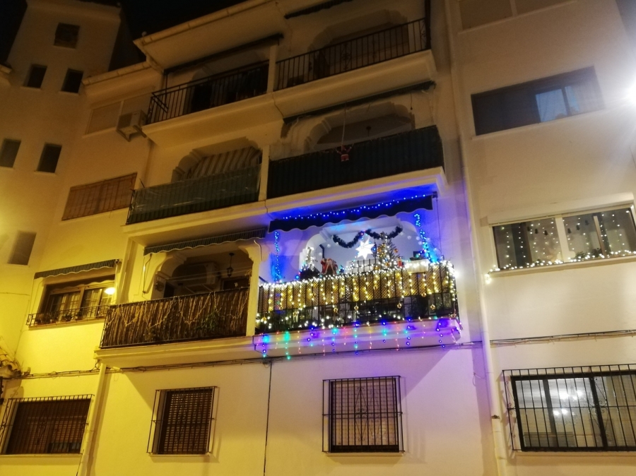 De esta forma, los ganadores han sido una pareja joven que apenas lleva un año viviendo en esta barriada. El segundo premio ha sido para una vivienda situada en una planta baja que, a falta de balcón, ha decorado la entrada del edificio. El tercero ha recaído en dos viviendas que han compartidos su balcones para instalar un gran árbol de Navidad con luces de colores.