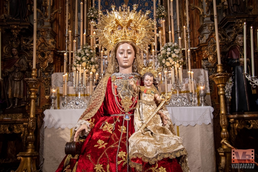 Como informaba la hermandad, la imagen se presentó al pueblo de Ronda sentada sobre un sillón de talla rondeña, recuperando una imagen anterior al año 1960, perteneciente al mobiliario de la casa donde falleció el Beato Fray Diego José de Cádiz. La Virgen lucía el vestido y manto de terciopelo rojo con bordados en oro donado en su día por la Duquesa de Parcent. En su pecho, un broche de oro y pecherín de pedrería, donados por la Duquesa de Alba, broches, corales y collares de perlas, donados y cedidos por devotas de la Santísima Virgen.