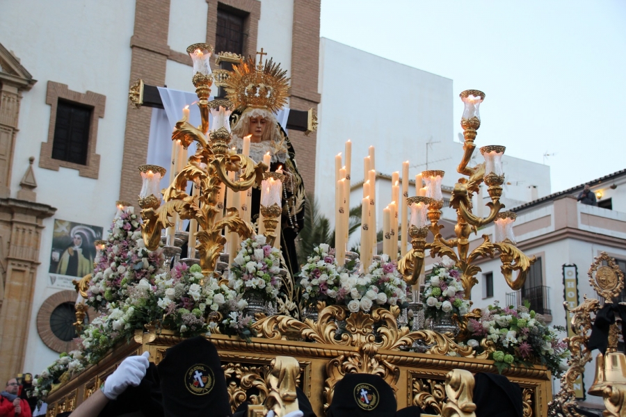 Cuando se abran las puertas de la Merced y veamos la cruz de guía asomar en la escalinata, sabremos que este año la Soledad paseará por la ciudad bajo un manto de estrellas y rodeada de cientos de hermanos que con sus velas señalan el camino a seguir. La emoción nos embriagará, el nudo en la garganta se desatará cuándo las primeras lágrimas que hicieron brillar nuestros ojos empiecen a recorrer las mejillas, los corazones romperán el silencio de la noche y sin querer darán ritmo al desfile procesional, las primeras notas de la capilla musical “Lignum Crucis” acompañarán la tristeza de una Madre que cierra la Semana de Pasión con la esperanza de un nuevo amanecer el domingo de Pascua.