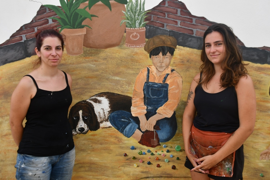 Con la temática de los juegos tradicionales y la niñez, este año Alba González y Sonia Ruiz están creando cinco nuevos murales que se sumarán a la veintena que se realizaron en las primeras dos ediciones de ‘Fachadas Creativas’ y que hacen referencia al ámbito rural, a las costumbres, las tradiciones, la naturaleza y, en definitiva, a aspectos relacionados con el pueblo.