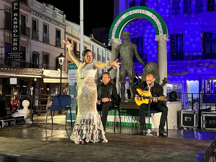 El Puente Nuevo fue el escenario elegido por la Consejería de Cultura de la Junta de Andalucía para representar a toda la provincia de Málaga en la acción “Llamada al flamenco” a cargo de Rocío Bazán.