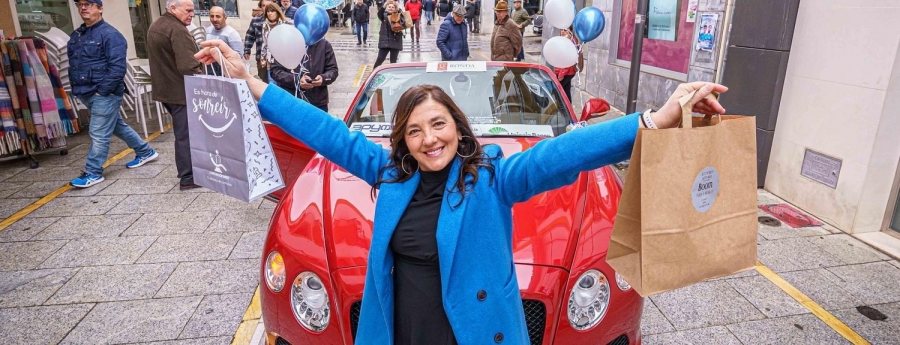 La afortunada ha sido Ana María Reguera, profesora del colegio Miguel de Cervantes. Su aventura ha comenzado en el último tramo de la calle La Bola, con un coche y chófer a su disposición para llegar más rápido a hacer sus compras.