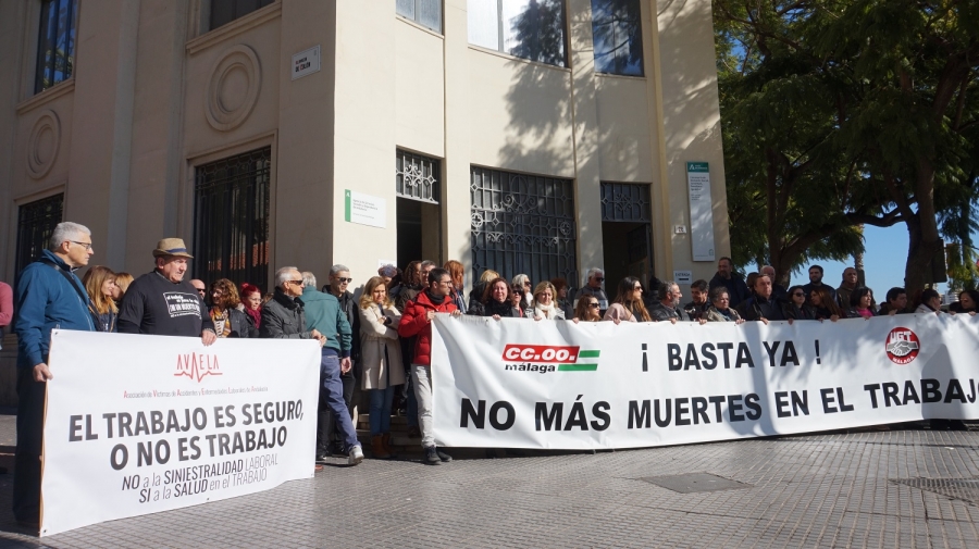 CCOO ha organizado este viernes una concentración en Málaga para mostrar sus condolencias a la familia y amistades del vecino de Ataje que falleció ayer en un accidente laboral en su municipio tras caerle encima un dumper.