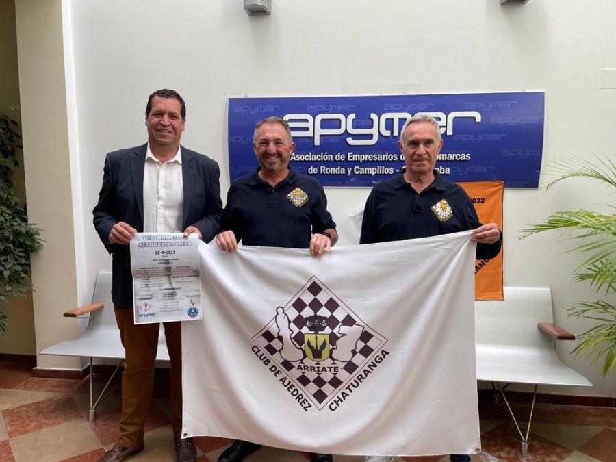 La sede de la Asociación de la pequeña y la mediana empresa de las comarcas de Ronda, Campillos y Guadalteba, en la calle María Cabrera, Apymer, acogerá el próximo 22 de abril, sábado, el VII Torneo de Ajedrez organizado por el Club de Ajedrez Chaturanga, de Arriate. La cita ha sido presentada este jueves de la mano de Carlos García, vocal de este club; y del secretario de Apymer, Antonio Palma.