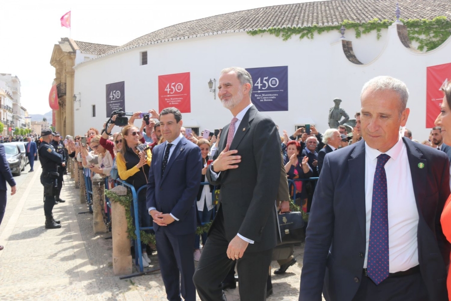 El Rey de España se ha dado un baño de multitudes este miércoles en Ronda, hasta la que se ha desplazado con motivo del 450 aniversario de la fundación de la Real Maestranza de Caballería de Ronda (RMR), ente que fue fundado en 1573 como orden militar, con fines defensivos; y hoy en día se dedica plenamente a la difusión cultural, realizando una gran labor también en el ámbito de la educación y al frente de la escuela de equitación más antigua de España y una de las más longevas de Europa, entre otros. También gestiona la visita turística a la plaza de toros, uno de los principales monumentos del municipio.