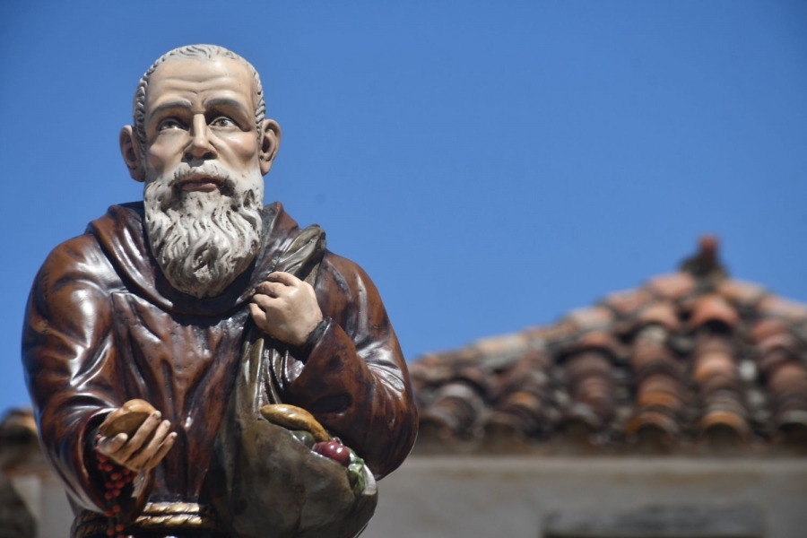 Un primer plano de la imagen de Fray Leopoldo que procesionó por las calles de la localidad y que fue donada por una familia del pueblo.