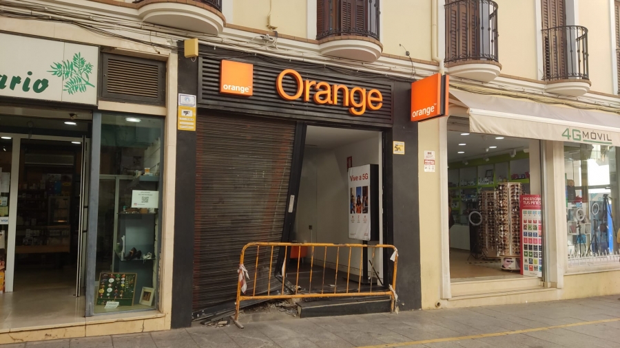 Empotran un coche contra la tienda de Orange en la calle La Bola para robar móviles